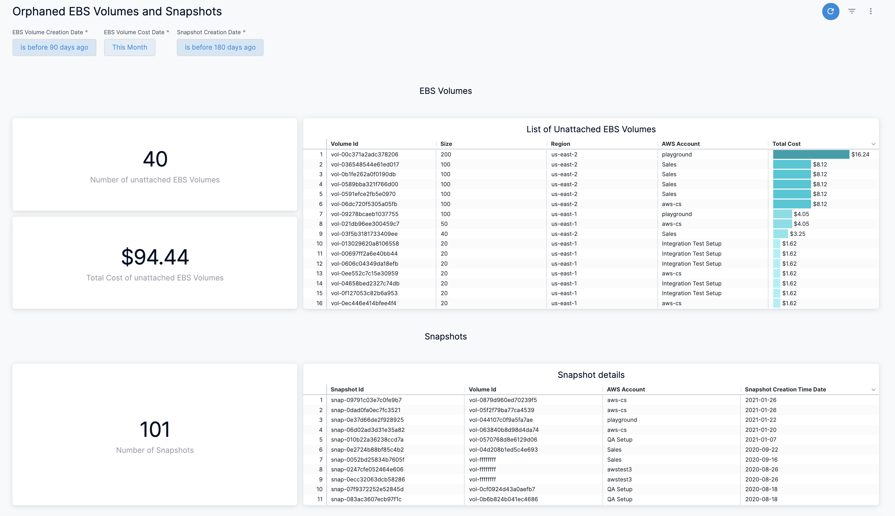 Orphaned EBS Volumes and Snapshots Dashboard