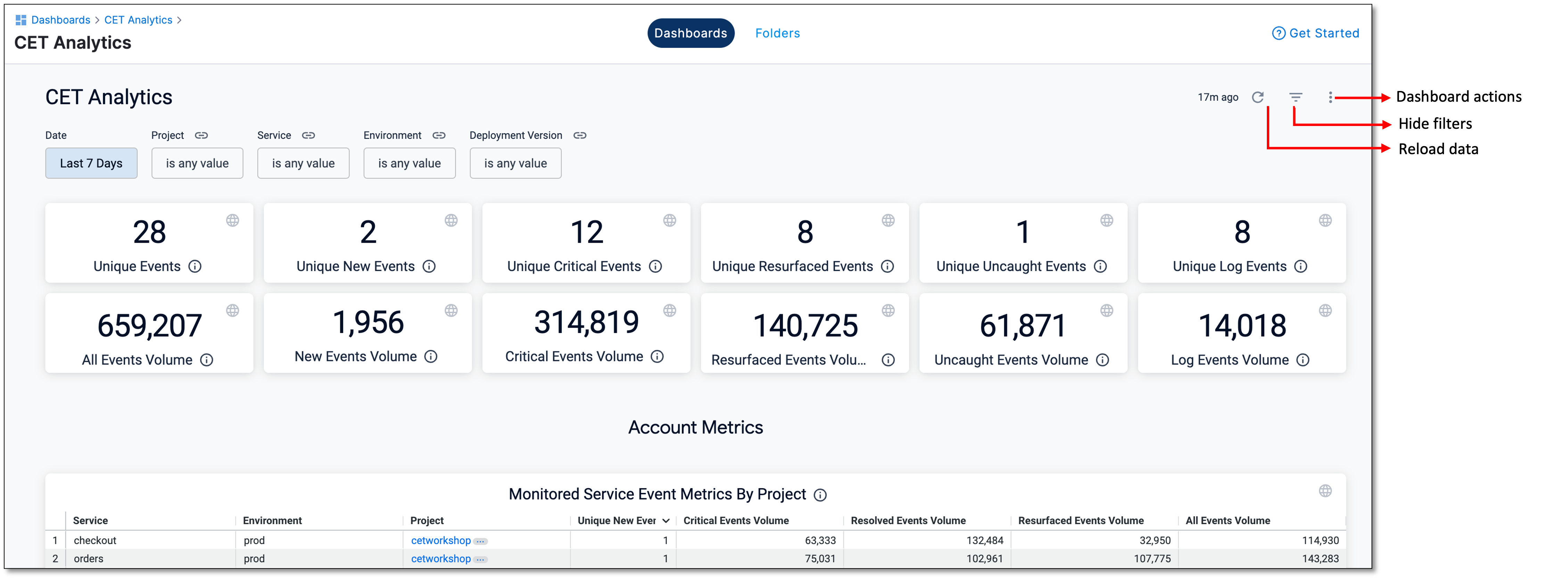• Reload the data: Refresh the dashboard data to ensure you're viewing the most up-to-date information.