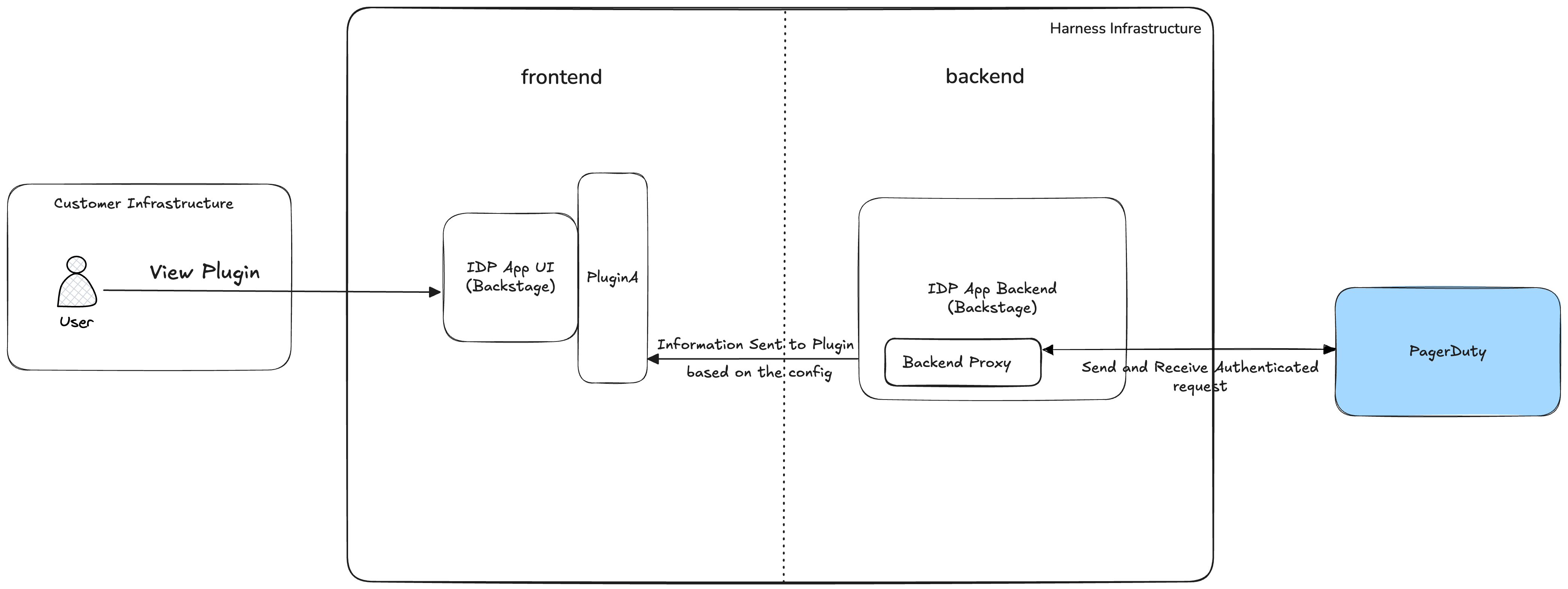 In this case, the plugin connects to an internal system using both Backend Proxy and a Delegate Proxy. The request to delegate proxy goes through an interceptor which checks for the host as it is required by the delegate proxy.