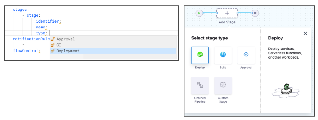 Harness pipeline YAML lets you model your release process declaratively. Each pipeline entity, component, and setting has a YAML entry.