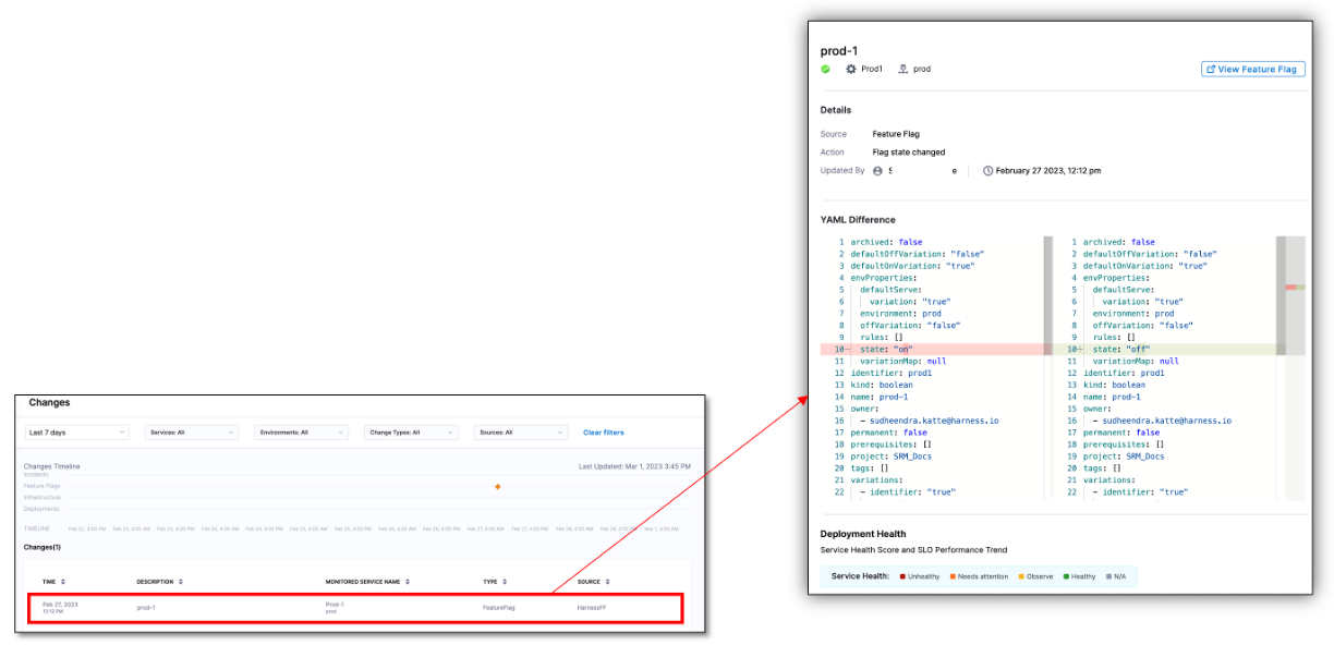 The Changes dashboard helps you understand when the change occurred, why it took place, and what impact it had on the health of the monitored service.